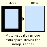 - Crop white borders: The white border surrounding content will be cropped, reducing the image's size. Each side of the image will be cropped up to where the first black or color elements are found.