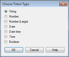- Select the token type from the Choose Token Type dialog box. Your selection will be reflected on the right side of the condition. For example, if you select Date, the right side of the condition will be formatted to accept dates.