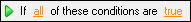 - Group Text: Click all or any to toggle between the two. Toggle to all if all of the conditions must be met. Toggle to any if any of the conditions can be met. Once you have selected any or all, click true or false to toggle between the two. Toggle to true if the conditions should be true. Toggle to false if the conditions should be false.