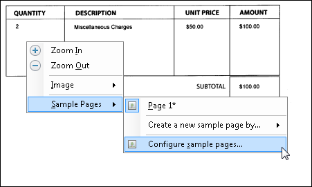 - Right-click on the sample image or text currently displayed, hover over Sample Pages, and select Configure samples pages