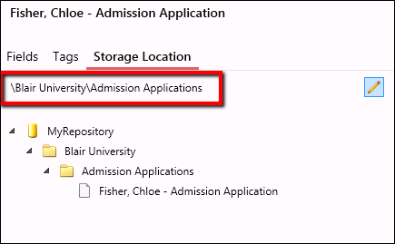 - Click the pencil to the right of the repository folder path, edit it, and press the Save button . If multiple documents are selected, changing the repository path will affect all the selected documents.