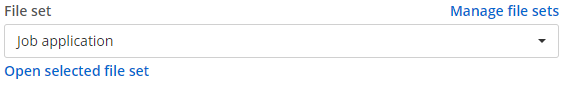 Example: For an HR process, a file set may require (min count 1) a single (max count 1) resume (type - Resume), several letters of reference as optional, and a required application form.