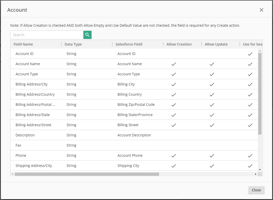 - In Salesforce, any non-encrypted field (email, text area, URL, phone, or string) will return partial-match results, otherwise only exact-match results will be returned.