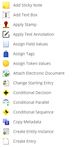 View a sample workflow. - Activity: A single, pre-built, configurable step in a workflow that interacts with Laserfiche entries, data, or outside sources. Activities are the building blocks of workflows. More information.