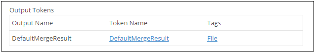- Under Output Tokens, provide a name for the token containing the resulting file from the merge. You do not have to modify the token tag labeled File.