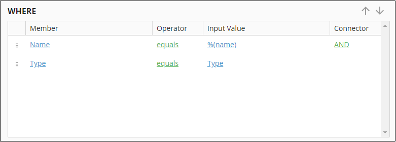 Example: Because the Name member uses the input parameter %(name), you can define the parameter in the properties pane. In the following example, the input parameter has the token value %(Name).