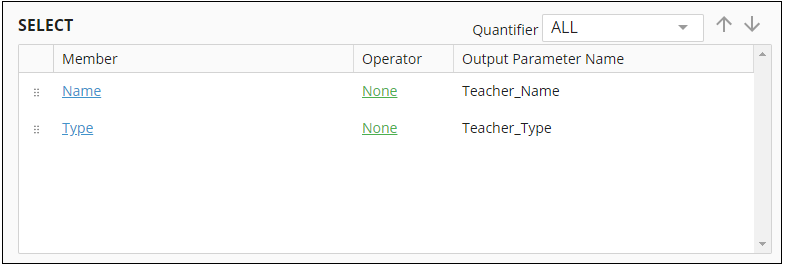 Example: The following output parameters Teacher_Name and Teacher_Type are referenced in the properties pane in the Workflow Designer.