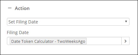 Example: You import a blank Word document in Laserfiche, but you completed the document two weeks before importing it. The following image shows the configuration for a process that automatically updates the filing date to two weeks before the file was added to the repository: